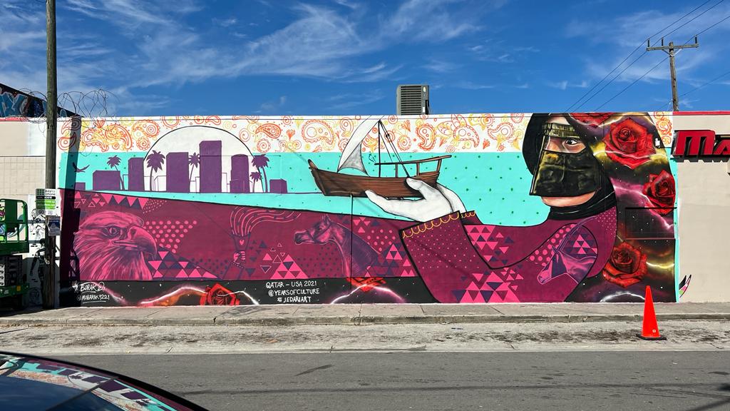 The Jedariart programme brings artists together to add vibrancy and meaning to Doha’s city walls through murals and street art. During the Qatar-USA Year of Culture 2021, Jedariart crossed continents to transform city walls across the US into canvases for cultural dialogue. Alongside Fatima Alsharshani, five more Qatari artists joined forces with American counterparts to bring new perspectives to public spaces.