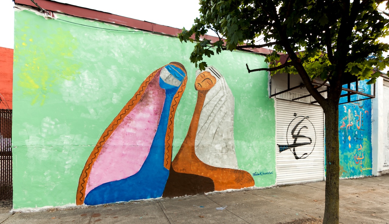 Nada Khozestani painted a mural entitled Side by Side, inspired by her deep love of Qatari culture. The resulting work expresses the beauty of the saturated colours found in daily life in Qatar and draws inspiration from elements found in nature.