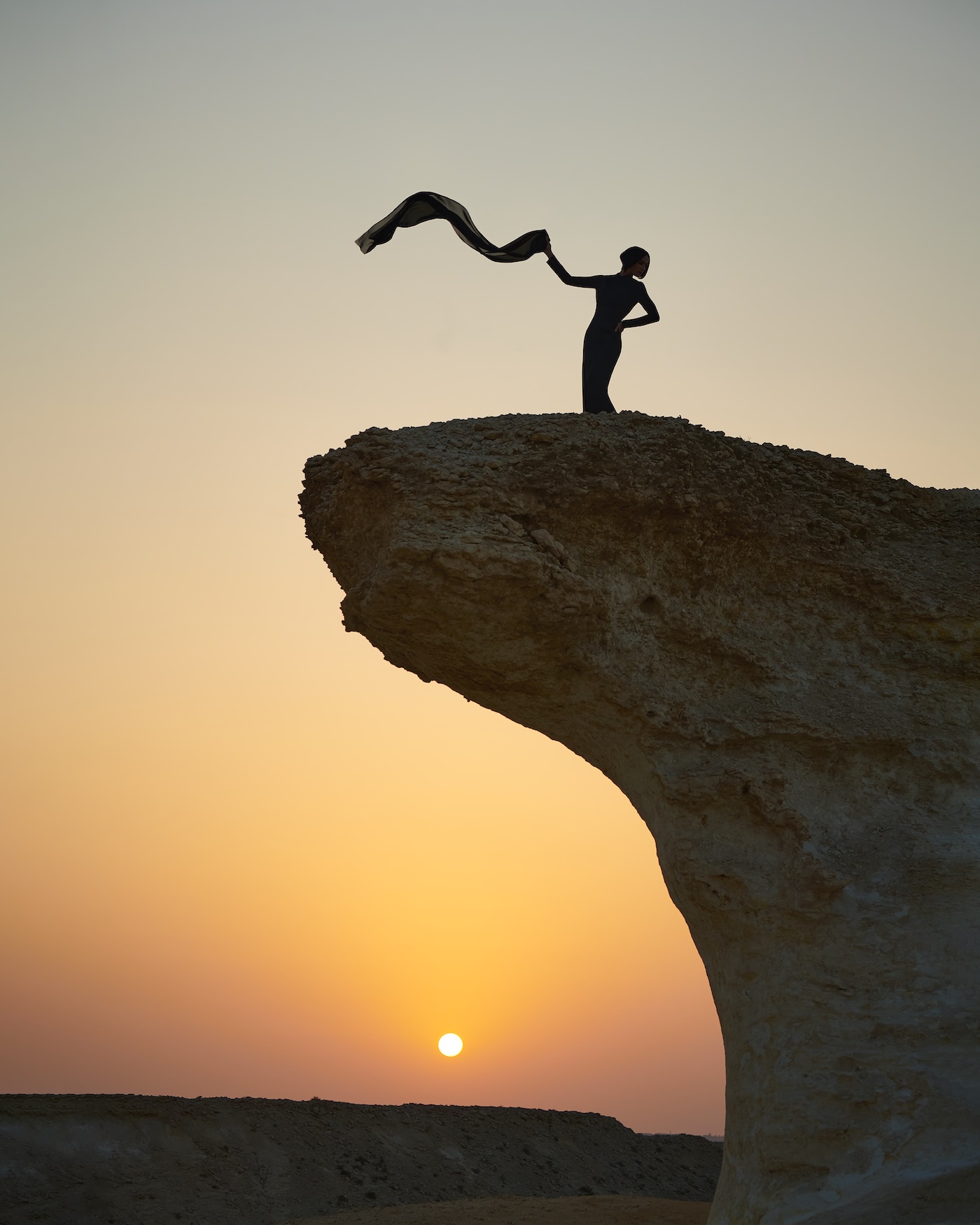 This photo was taken in Ras Abrouq on the Zekreet Peninsula to the north of Dukhan. It’s adjacent to the Unesco-protected Al Reem Biosphere Reserve and has incredible rock formations that inspired the first dress I made for this collection.